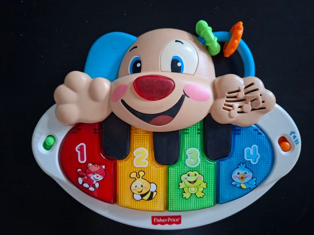 Detalles del productoDivertido piano musical con forma de perro de Fisher Price. Ideal para que los más pequeños aprendan y jueguen. 3-36 meses.