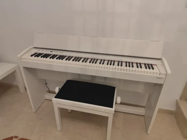 Piano digital Roland F130 R en color blanco. Incluye banqueta. - Diseño moderno y compacto. - Teclado sensible. - Sonido de alta calidad.
