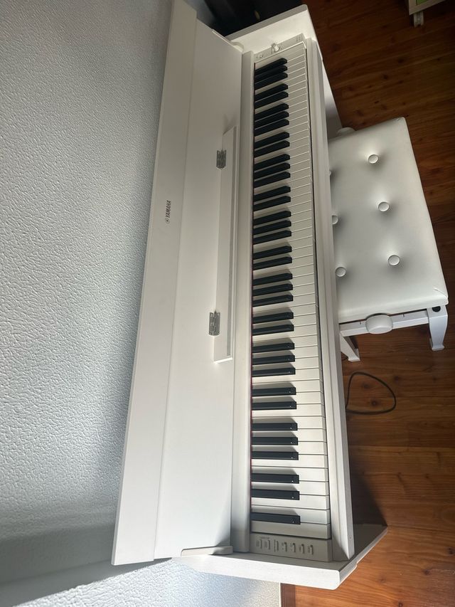 Es un piano que se a usado muy poco ya que me lo compre por capricho y me canse de el muy rapido. Esta impecable casi a estrenar. Su sonido es igual que uno acustico. Viene con la silla a medida, la cual se puede subir o bajar. El piano incluye: botones para grabar canciones, para apagar y encender, metronomo, ruleta para subir o bajar el volumen... Tambien incluye un adaptador para enchufar auriculares, los tres pedales tipicos de un piano acustico y un cable para enchufarlo que esta en perfecto estado.