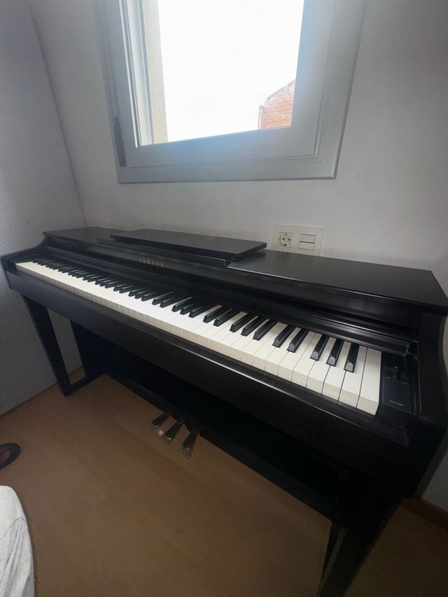 Detalles del productoPiano digital Yamaha Clavinova CLP-625 con banqueta incluida y el plástico de fábrica tanto en la baqueta como en los pedales.