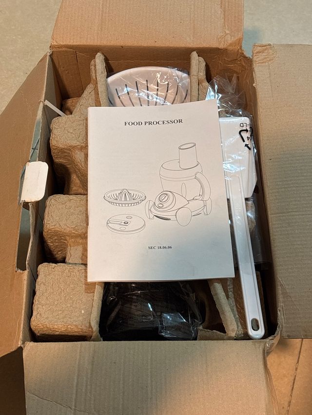 Detalles del productoPequeño electrodoméstico de cocina, con función de picadora, corte en rodajas y rayado, exprimidor y batidora. Todo en uno. Sin estrenar. Procesador de alimentos con manual de instrucciones. Medidas del producto
