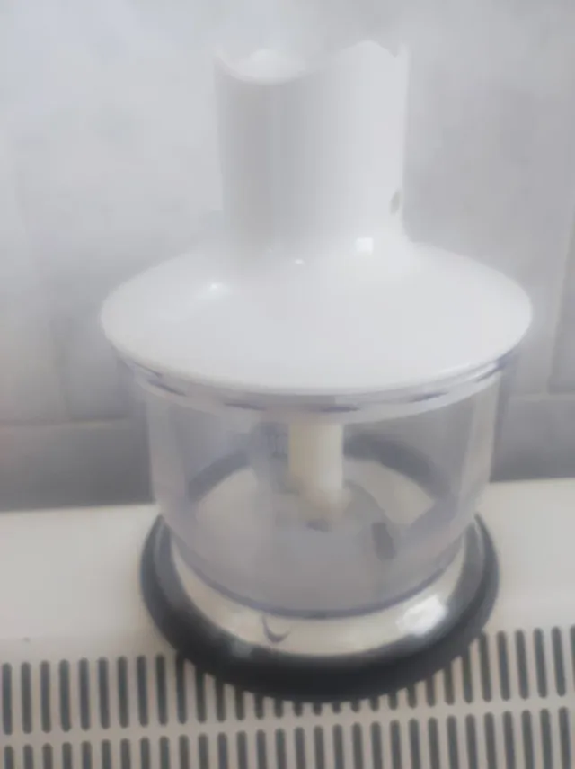 Picadora de alimentos con recipiente transparente. - Diseño moderno en color blanco. - Base antideslizante.