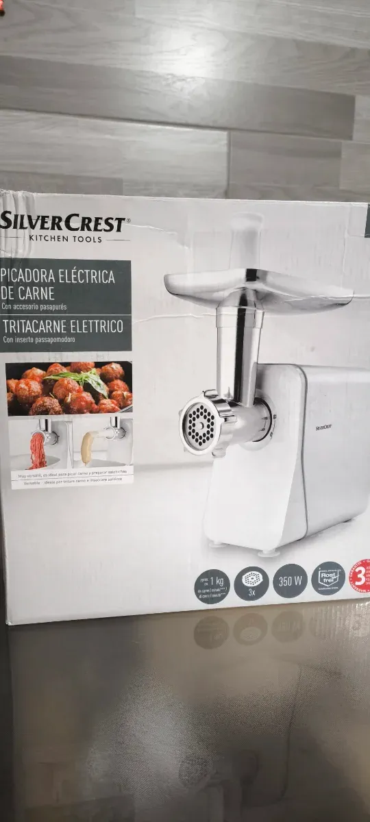 Detalles del productoNUEVA EN SU CAJA. Picadora eléctrica Silvercrest para carne y pasapurés. Ideal para preparar tus propias recetas en casa.
