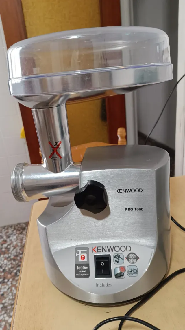 Picadora de carne Kenwood PRO 1600 con motor de 1600W. - Cuerpo de metal. - Incluye accesorios. - Diseño plateado.