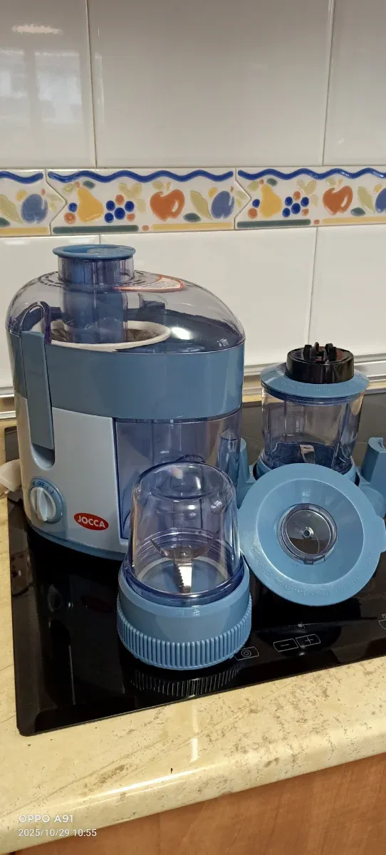 Detalles del productoPicadora y licuadora JOCCA en color azul y blanco. Nos la regalaron, la sacamos de la caja pero nunca se ha usado. Incluye varios accesorios.