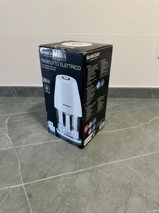 Detalles del productoPicadora SilverCrest con función turbo para más potencia. Tiene un pequeño golpe en el plástico pero funciona perfectamente, es solo estético. No ha tenido uso, embalaje original.