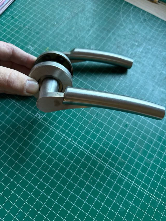 Detalles del productoJuego de picaportes de acero para puerta. Diseño moderno y elegante.