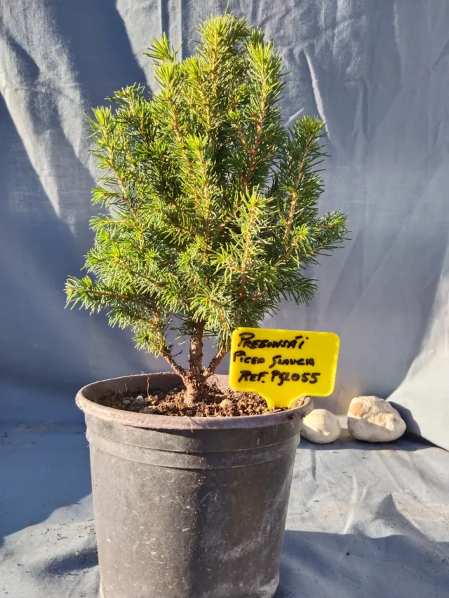 Detalles del productoPrecioso prebonsái de Picea Glauca, también conocida como abeto blanco.