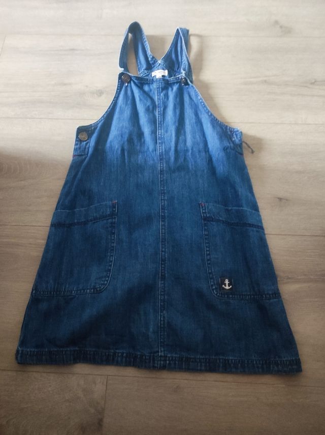 vestido pichi denim peto falda y camiseta manga corta blanca.batela. un uso