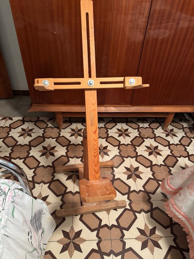 Pie de madera para la práctica de bolillos. Es un soporte estable y ajustable. - Material: Madera. - Color: Natural.