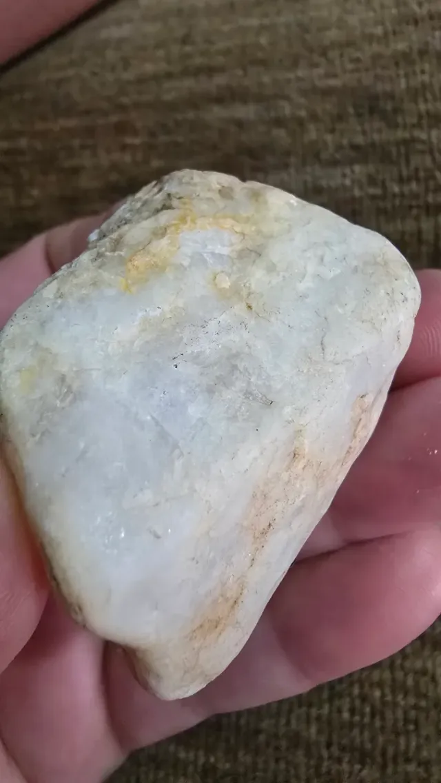 Piedra natural con tonos blancos y ocres, ideal para decoración o coleccionismo. - Textura irregular. - Forma redondeada.