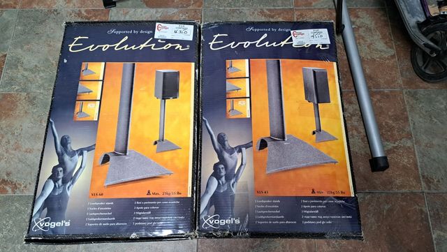 Detalles del productoDos juegos de soportes de suelo para altavoces, uno de 45cm de altura y otro juego de 60cm, de la prestigiosa marca holandesa Vogels, modelos VLS 45 y VLS60. en su caja sin estrenar