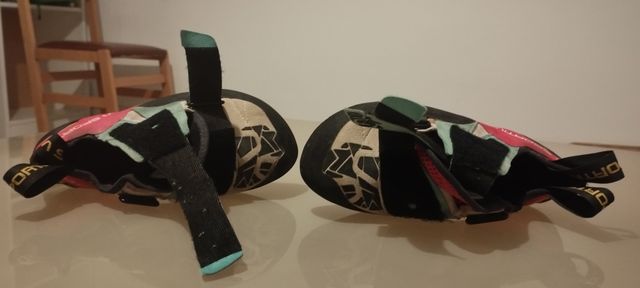 Detalles del productoPies de gato Otaki (La Sportiva) en talla 36.5. Los tengo desde hace años pero nunca me los pongo porque me hacen daño. Los compré demasiado pequeños para mí. Tras mucho tiempo en el armario sin tocarlos, los pongo a la venta. No recuerdo haberlos usado muchas veces, pero en la suela sí se aprecia uso o desgaste. Nunca los he recauchutado.