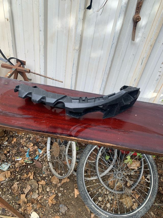 Pieza de plástico negro para coche. - Forma curva y alargada. - Múltiples puntos de anclaje y soportes.