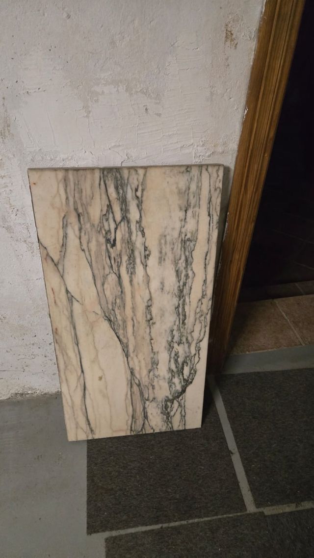 Pieza decorativa de mármol con vetas naturales. - Material: Mármol auténtico. - Diseño único con veteado en tonos grises y beige.