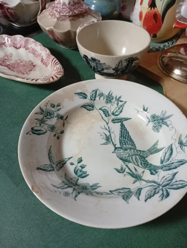 Conjunto de piezas de vajilla de la marca Cartuja de Sevilla. - Diseño floral en color verde. - Estilo clásico y elegante.
