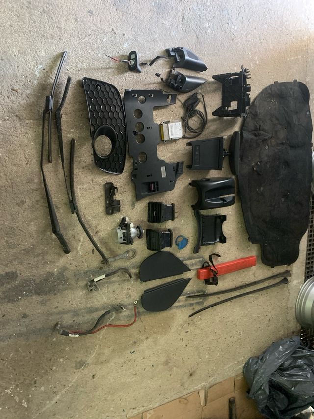 mantilla de capo , molduras de luna del. cubrecaña de volante y direccion tapas laterales del salpicadero aireadores del limpiaparabrisas del plastico antinieblas conductor antinieblas izq cerradura capo cenicero completo espejo interior antena de techo twitters del puertas cable y luces matricula centralita de airbag bornes de bateria tapa bajo salpicadero entrada OBD gancho Remolque.