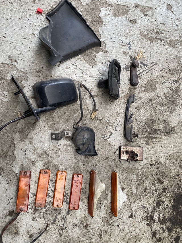 Tulipas paragolpes fino———10€ la pareja Piloto paragolpes ancho——5€ Cerradura—————————-7€ Manilla———————————15€ Manivela ventanilla—————5€ Retrovisor—————————-25€