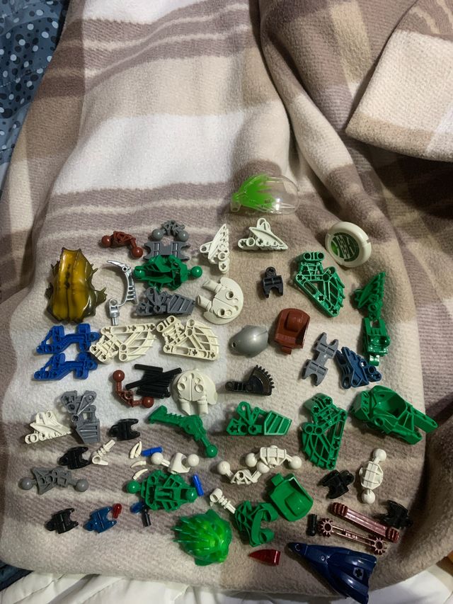 Detalles del productoLote de piezas sueltas de Lego Bionicle. Algunas con evidentes signos de desgaste y dos de los pies con leves rupturas, pero enganchan bien. Envío por Correos.