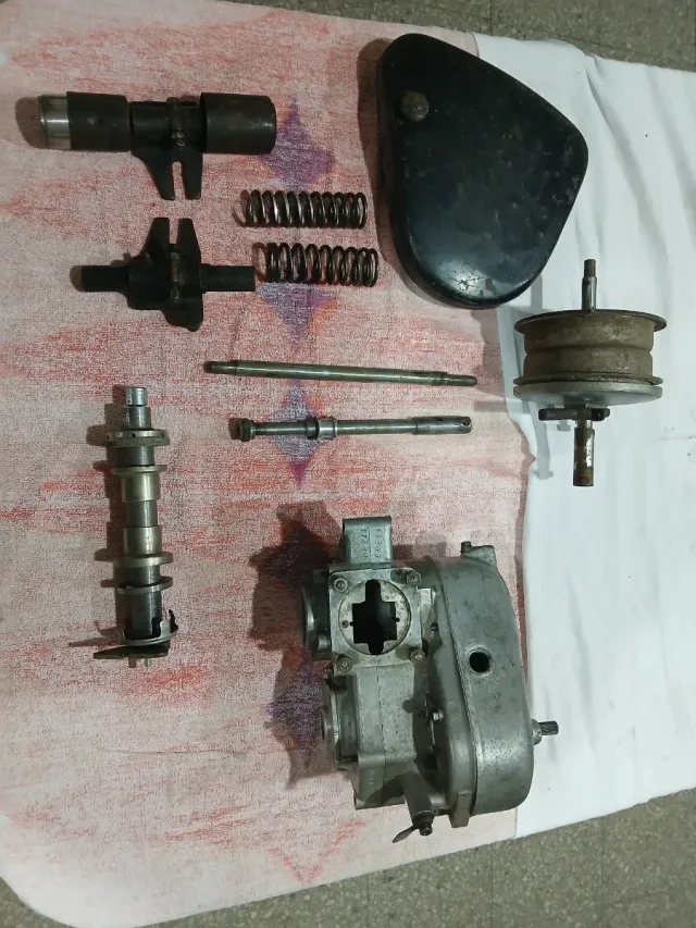 Lote de varias piezas para peugeot movesa - Componentes de motor. - Carburador. - Tapa lateral. - Muelles. - Eje. - Palanca.