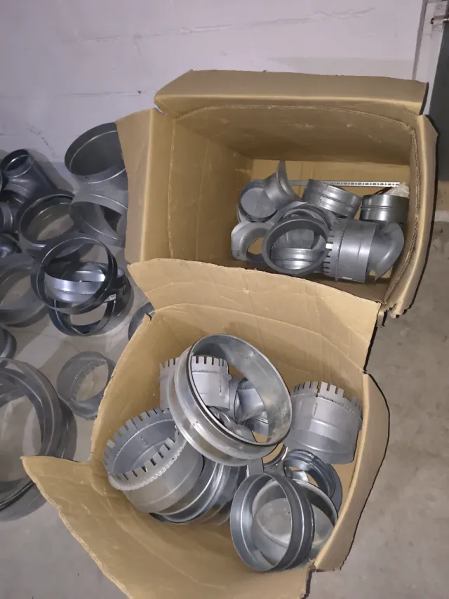 Lote de piezas para conductos de chapa galvanizada. - Material: Chapa galvanizada. - Tipo: Accesorios para tubos.