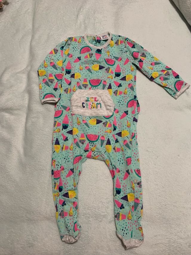 Detalles del productoPijama de bebé con un divertido estampado de helados y sandías. Es una prenda cómoda y colorida.