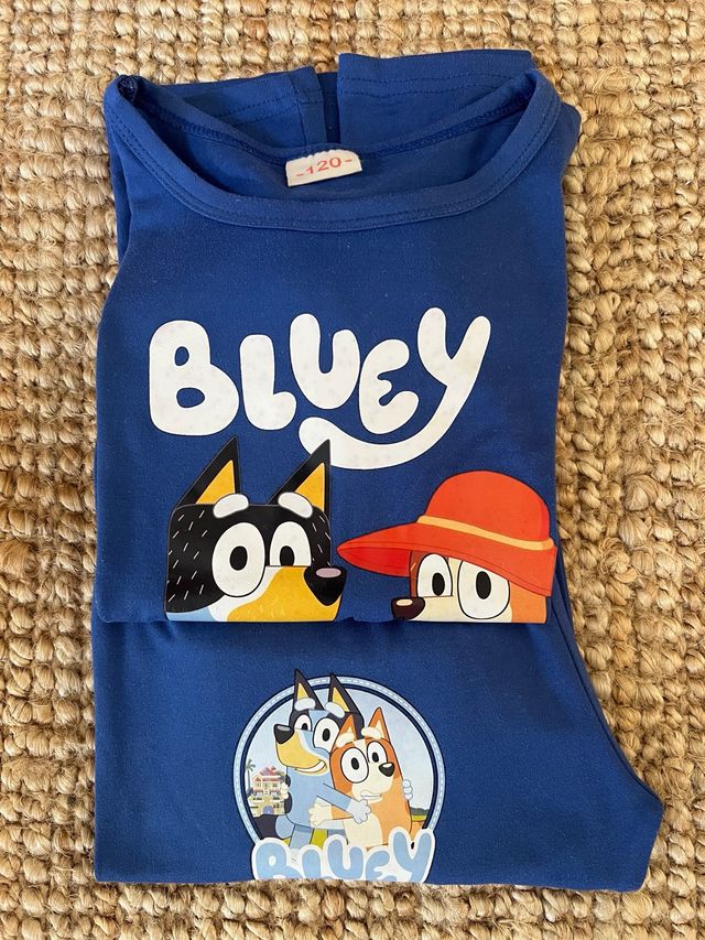 Pijama infantil del personaje Bluey, talla 120 cm. - Color azul. - Diseño con los personajes de Bluey. - Buen estado.