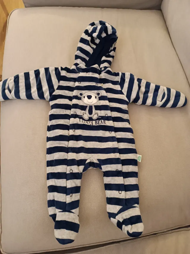 Detalles del productoEste pijama buzo es perfecto para mantener a tu bebé abrigado y cómodo. Presenta un diseño de rayas azules y blancas con un adorable osito.
