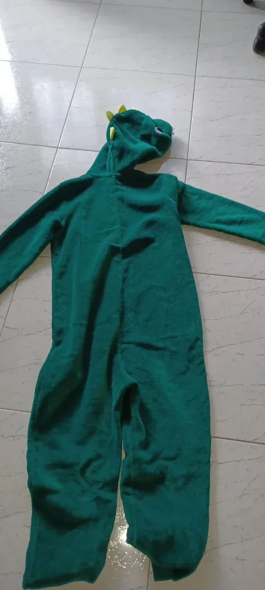 Divertido pijama con forma de dragón en color verde. Perfecto para estar cómodo en casa. - Diseño de dragón con capucha. - Material suave y cálido.