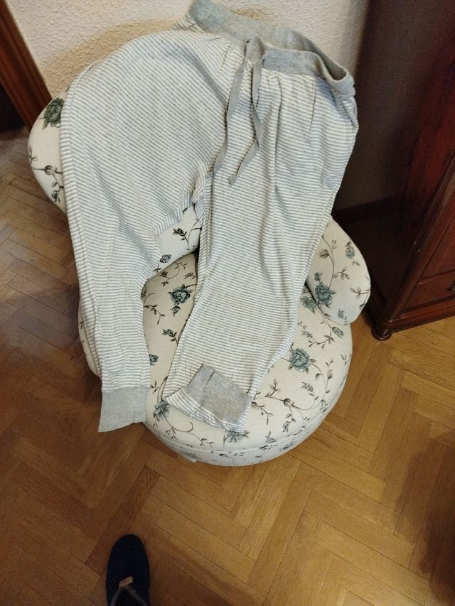Pijama Oysho Pantalón Rayas Gris Blanco
