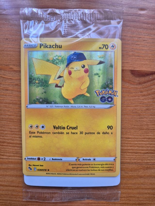 Detalles del productoEsta carta holografica promocional de Pikachu del juego Pokémon GO está en perfecto estado y en su precinto original.