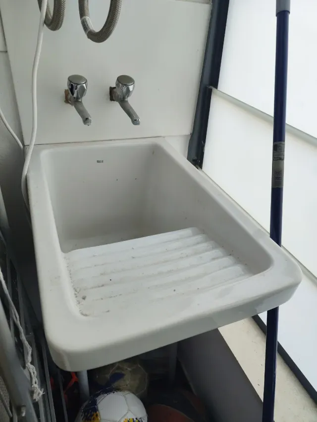 Pila de lavar blanca