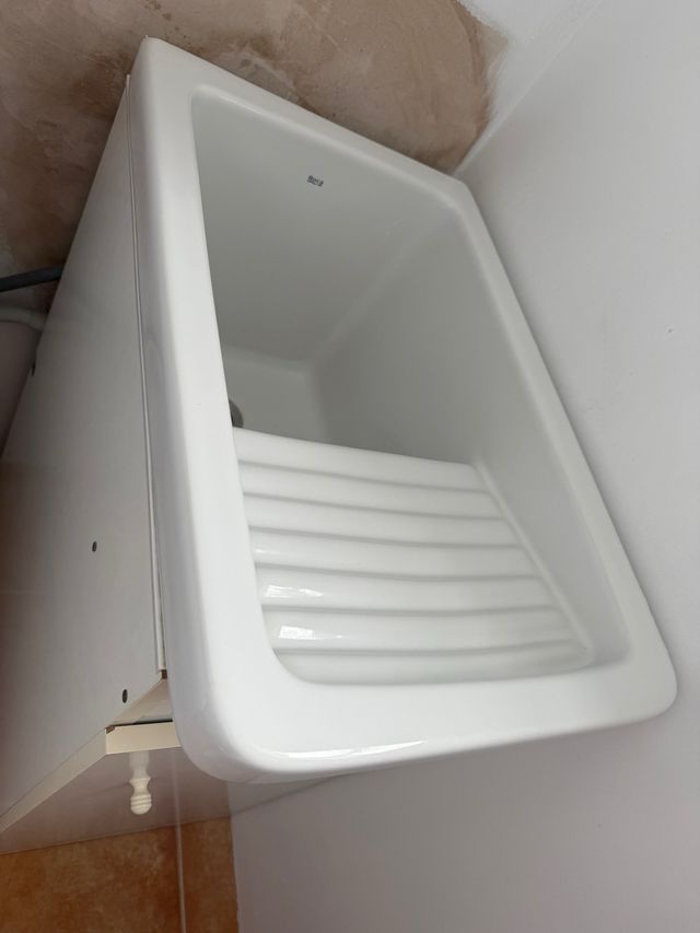 Detalles del productoPila de lavar de la marca Roca, en color blanco. Ideal para lavaderos o cuartos de servicio.