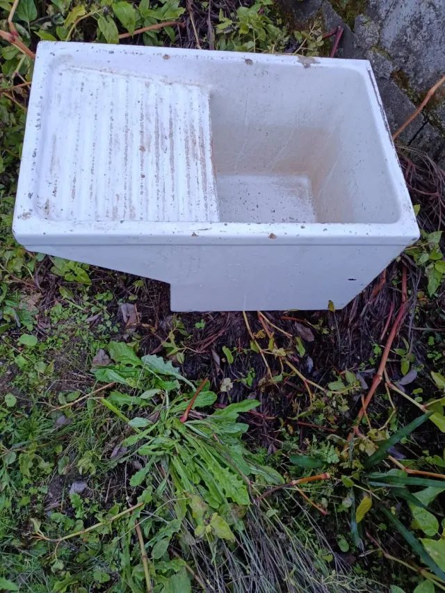 Pila de lavar antigua, ideal para exteriores o espacios rústicos. Necesita restauración - Diseño clásico con cubeta y zona de frotar.