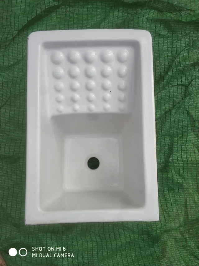 Pileta de lavar de cerámica blanca. - Diseño con relieve en la parte superior. - Agujero central para desagüe.