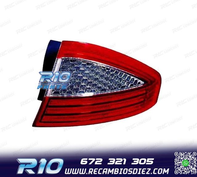Detalles del productoMóvel: 672 321 305 - Referencia: RLC013752. PILOTO DCH FORD MONDEO IV 5P 07- Lado: Derecho - No incluye portalámparas. - No es válido para la versión SW. - Lado exterior. - Color: Blanco. - Color: Rojo. Homologación Europea. El artículo incluye el E-Mark (Certificado Europeo) grabado en el cristal. Montaje. Instalación sencilla, en los anclajes originales del vehículo, sin necesidad de modificación en el mismo. Garantía. Dispone de 3 años de garantía. Estos no son productos originales de la marca FORD. El artículo ofrecido, solo es compatible para los modelos de vehículos descrit