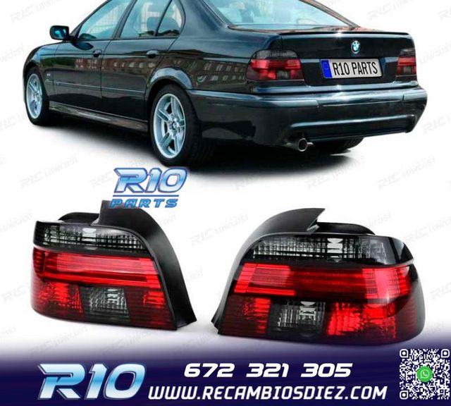 Detalles del productoMóvel: 672 321 305 - Referencia: RLC147889. PILOTOS BMW E39 95-00 AHUMADO ROJO Válido para: BMW Serie 5 E39 (1995-2000) Variante: Berlina (4 puertas) Especificaciones: Modelo: Look restyling Tecnología: Halógeno Tipo de bombilla: Halógeno Color: Rojo / Ahumado Homologación Europea. Los pilotos incluyen el E-Mark (Certificado Europeo) grabado en el cristal. Montaje. Instalación sencilla sin necesidad de modificación en el vehículo. Juego completo. El kit se compone de los dos pilotos, lado izquierdo y derecho. Garantía. Dispone de 3 años de garantía. Estos no son productos origi