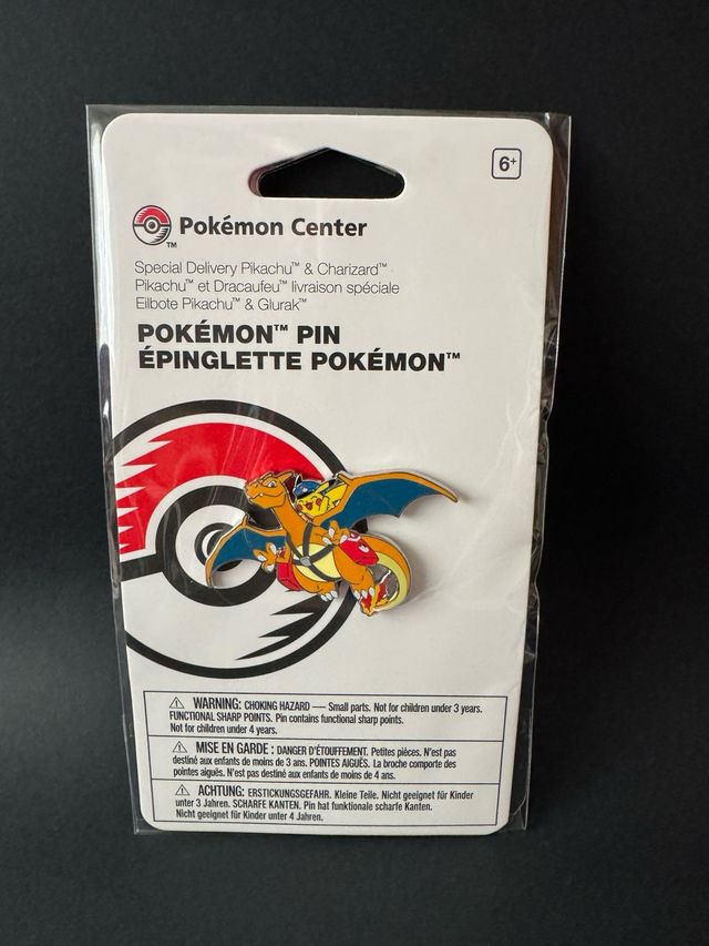 Detalles del productoPin de edición especial del Pokémon Center con Pikachu y Charizard.