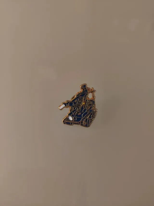 Pin con diseño de robot desactivador de explosivos de la Policía Nacional (CNP). - Detalle en esmalte azul y dorado.