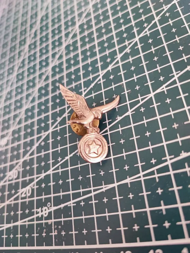 Detalles del productoPin con diseño de águila y estrella, inspirado en motivos militares.