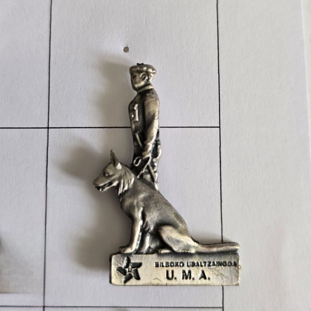 Insignia metálica de tipo pin de la Unidad Canina de la Policía de Bilbao. - Grabado con "Bilboko Udaltzaingoa U.Μ.Α." Medida aproximada: 4 cm