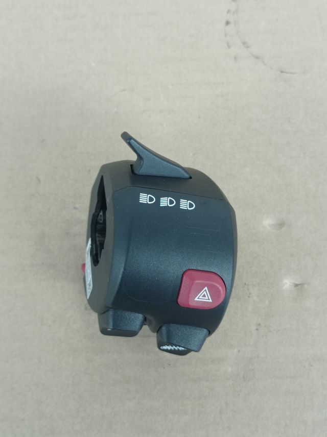 Pieza de plástico negra con detalles en rojo y azul. R1200GS 2008-2012 ESA+ABS - Forma circular con aberturas. - Diseño con salientes y recortes.