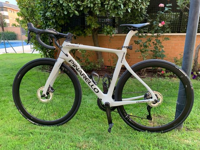 Detalles del productoBicicleta de carretera Pinarello Paris, grupo Ultegra Di2, 12 velocidades, platos 52/36T, casette 11-30T, manillar, potencia y tija Most, ruedas carbono Fulcrum 40 mm, neumaticos tubelizados, Está en muy buen estado, con pastillas, liquido de frenos y cadena recien cambiada. Talla 53