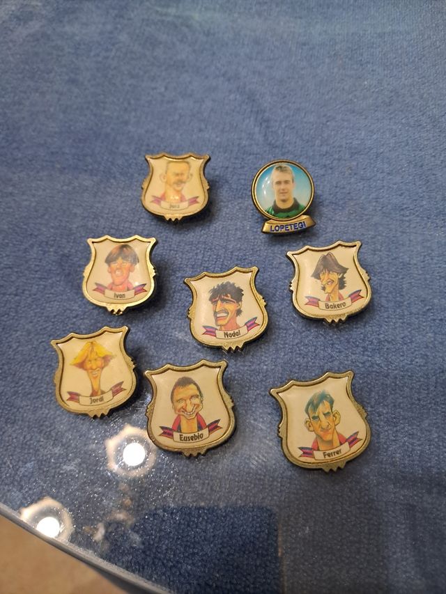 Colección de 8 antiguos pins de ex-futbolistas del fútbol club Barcelona