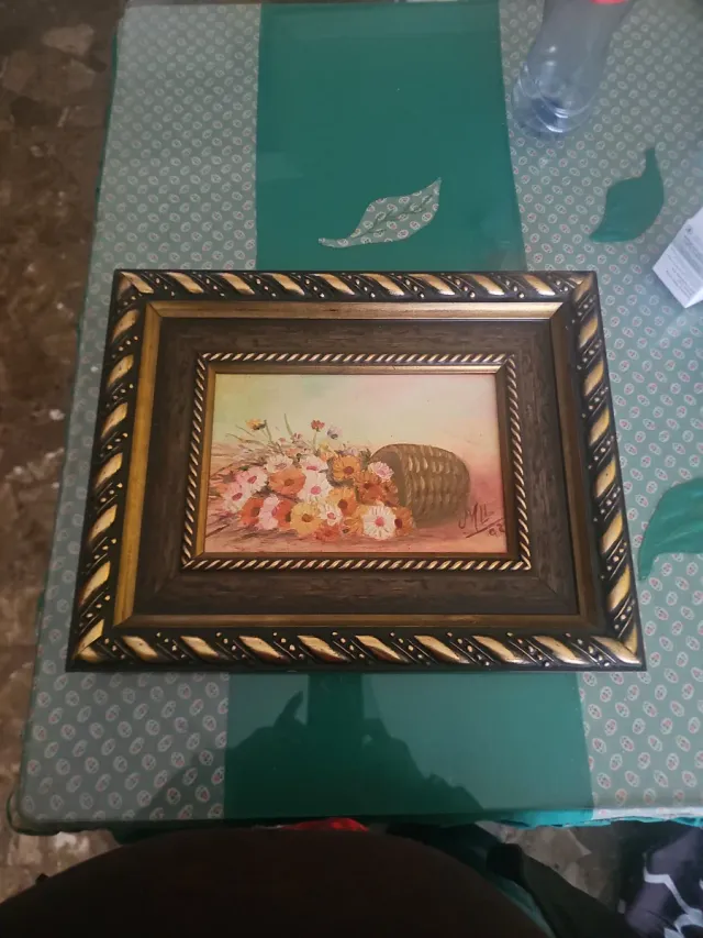 Detalles del productoPreciosa pintura al óleo de un ramo de flores silvestres en una cesta.