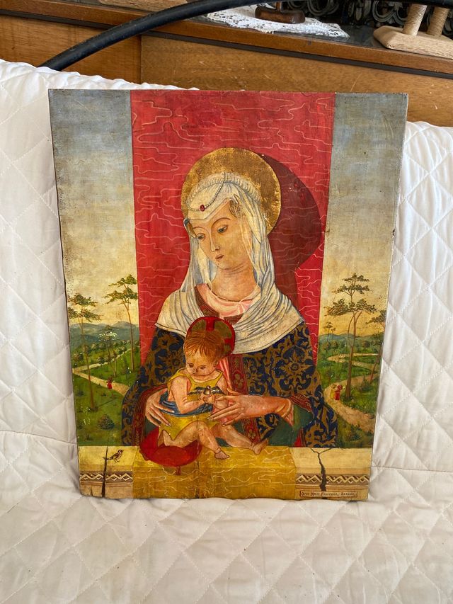 Pintura en tabla muy antigua, en perfecto estado de conservación es una Madonna italiana. Más información por privado más artículos similares a mi perfil