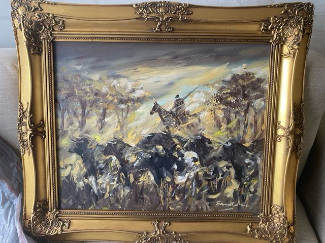 oleo sobre lienzo del pintor manuel escalona escena taurina medida del lienzo 59x61