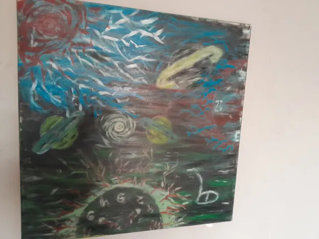 Detalles del productoObra de arte original creada con una técnica mixta de acrílico y témpera. La pieza presenta una composición abstracta y vibrante.