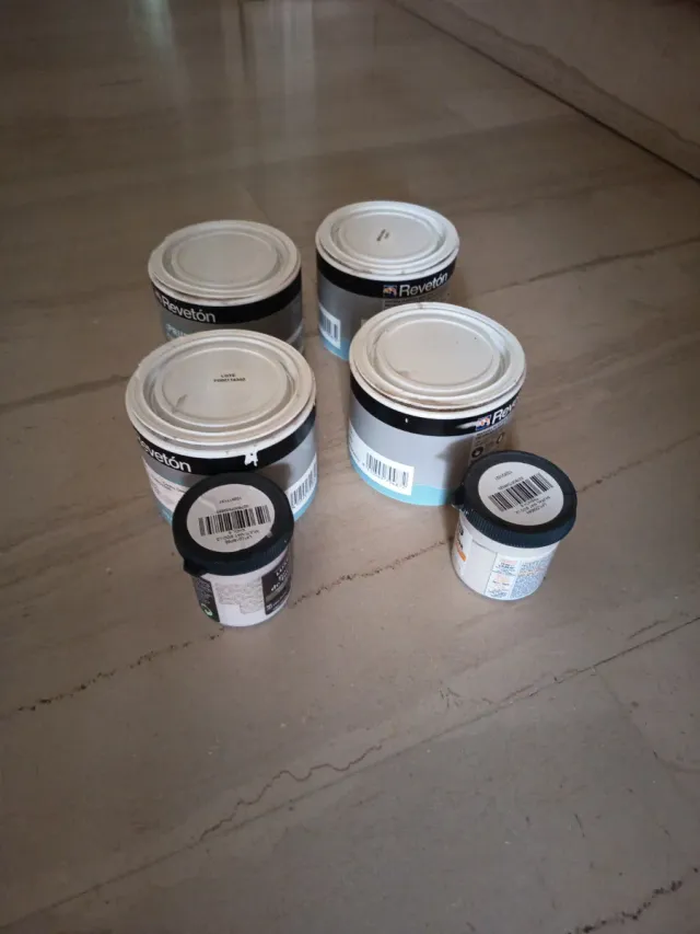 Detalles del productoLote de pinturas de muestra en color grisáceo.
