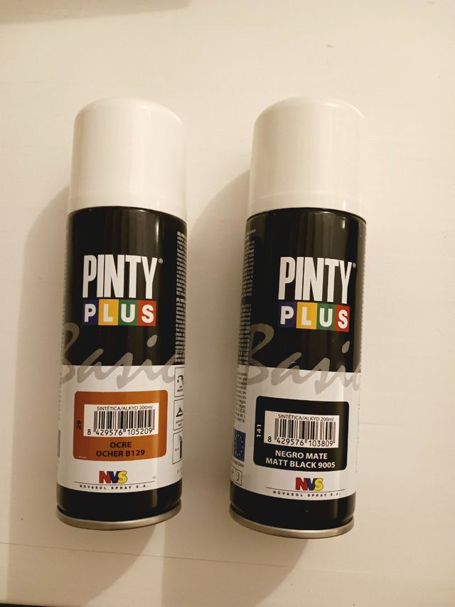 Detalles del productoDos botes de pintura en spray de la marca Pinty Plus, listos para usar. Están prácticamente nuevos.